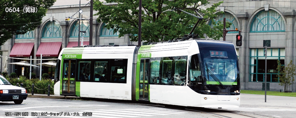 / 14-808-4 Toyama Chihō Railroad “Portram” Streetcar – 0604 (Yellow-Green)
